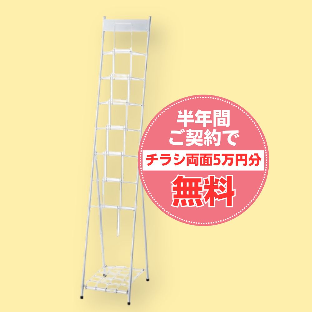 カタログスタンドを半年間設置いただける店舗様は、両面5万円が無料