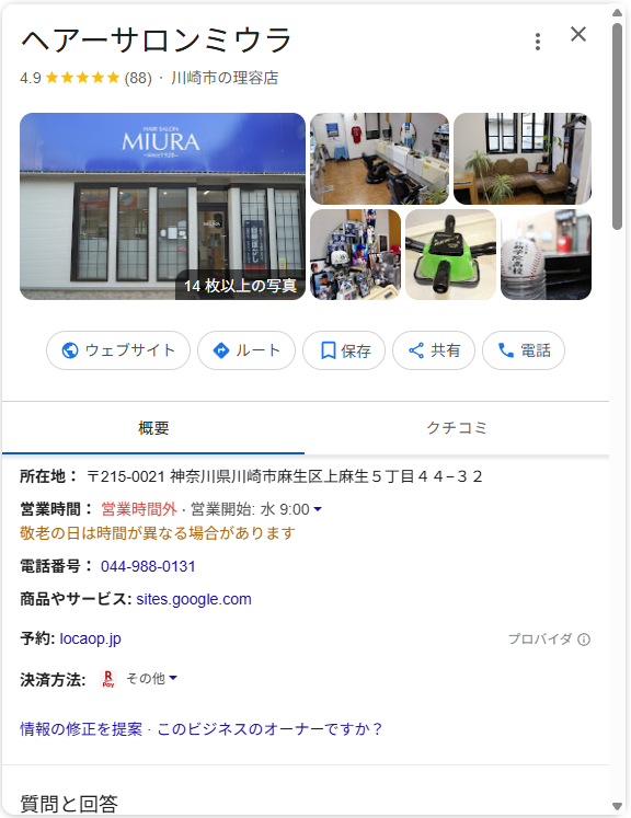Googleビジネスプロフィールの例